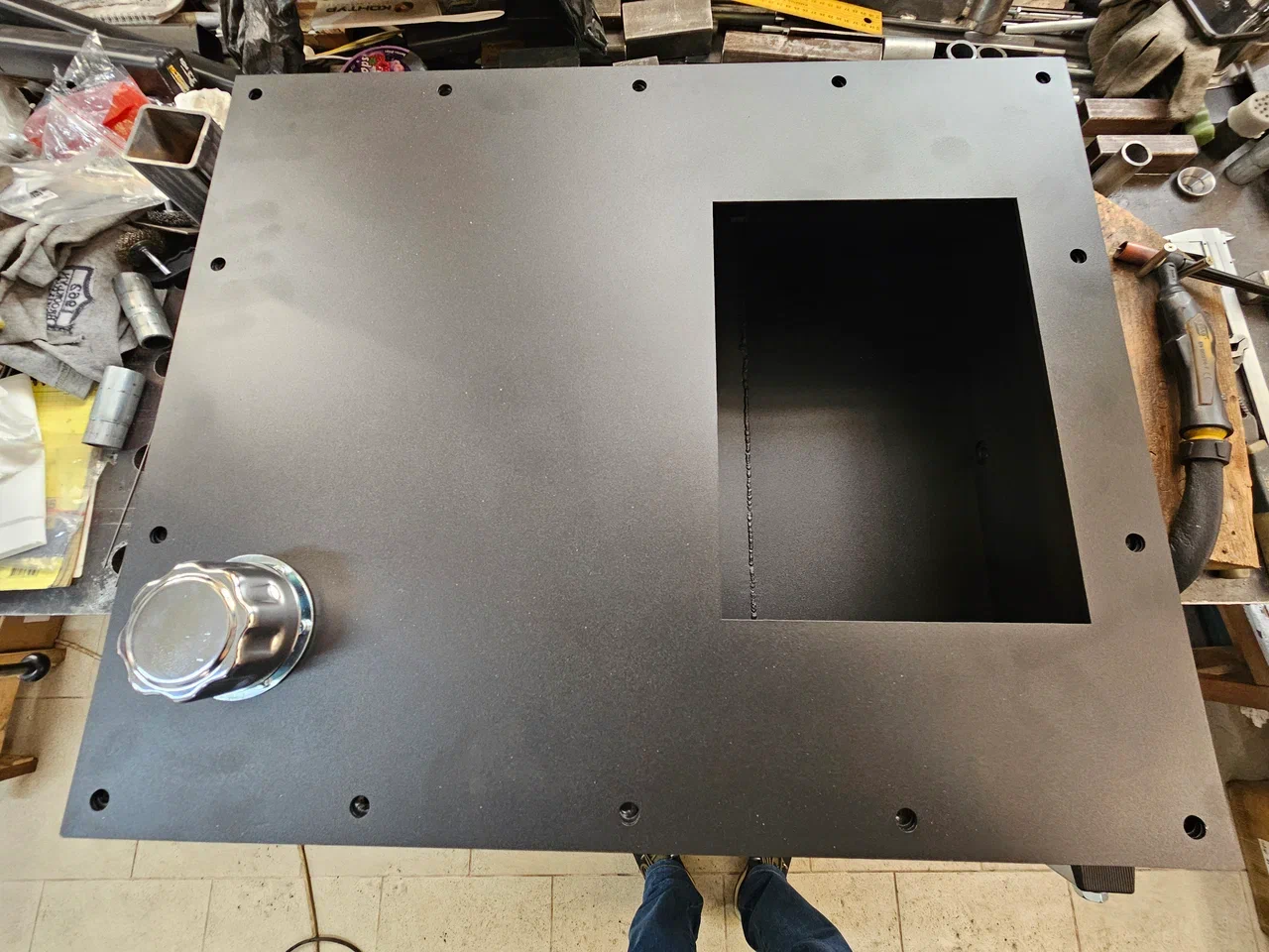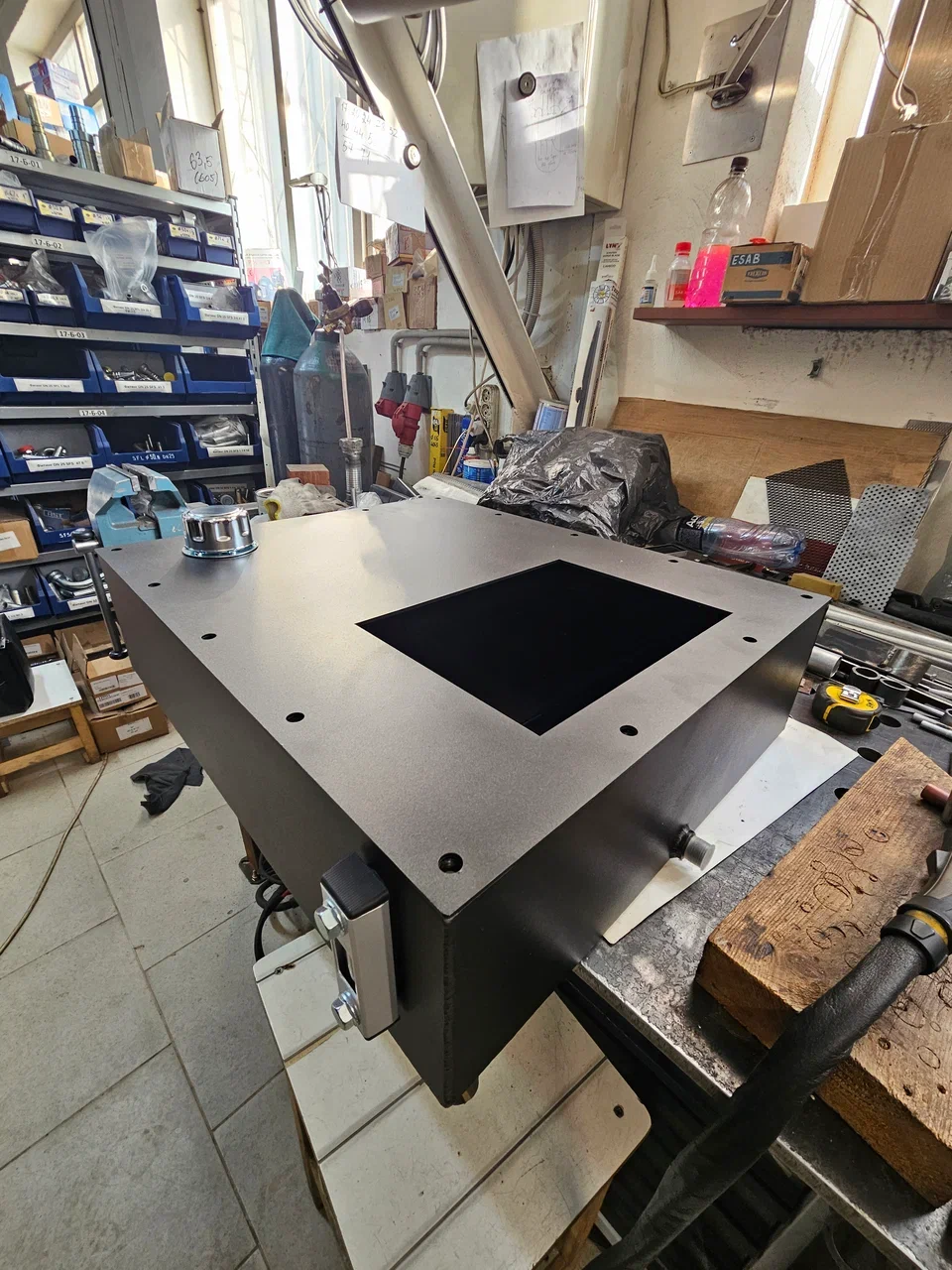 Выполняется порошковая окраска поверхностей маслобака и крышки ( заказчик может выбрать свои цвет за дополнительную оплату )