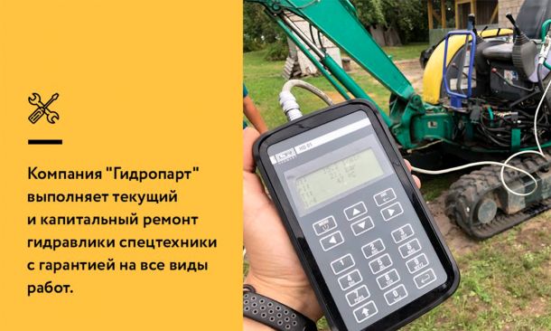 Компания «Гидропарт» выполняет текущий и капитальный ремонт спецтехники с гарантией на все виды работ. Наличие склада запчастей и производственной базы позволяет нам решить задачи любой сложности в срок от 1 дня.
